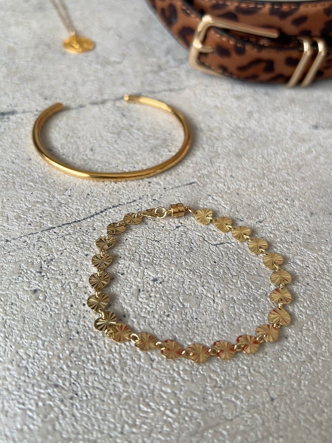 約7㎜サイズのハートを連ねた、存在感のあるシルバーチェーンブレスレット。