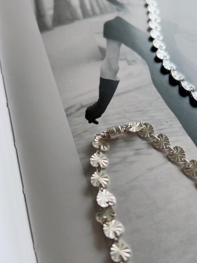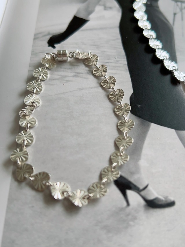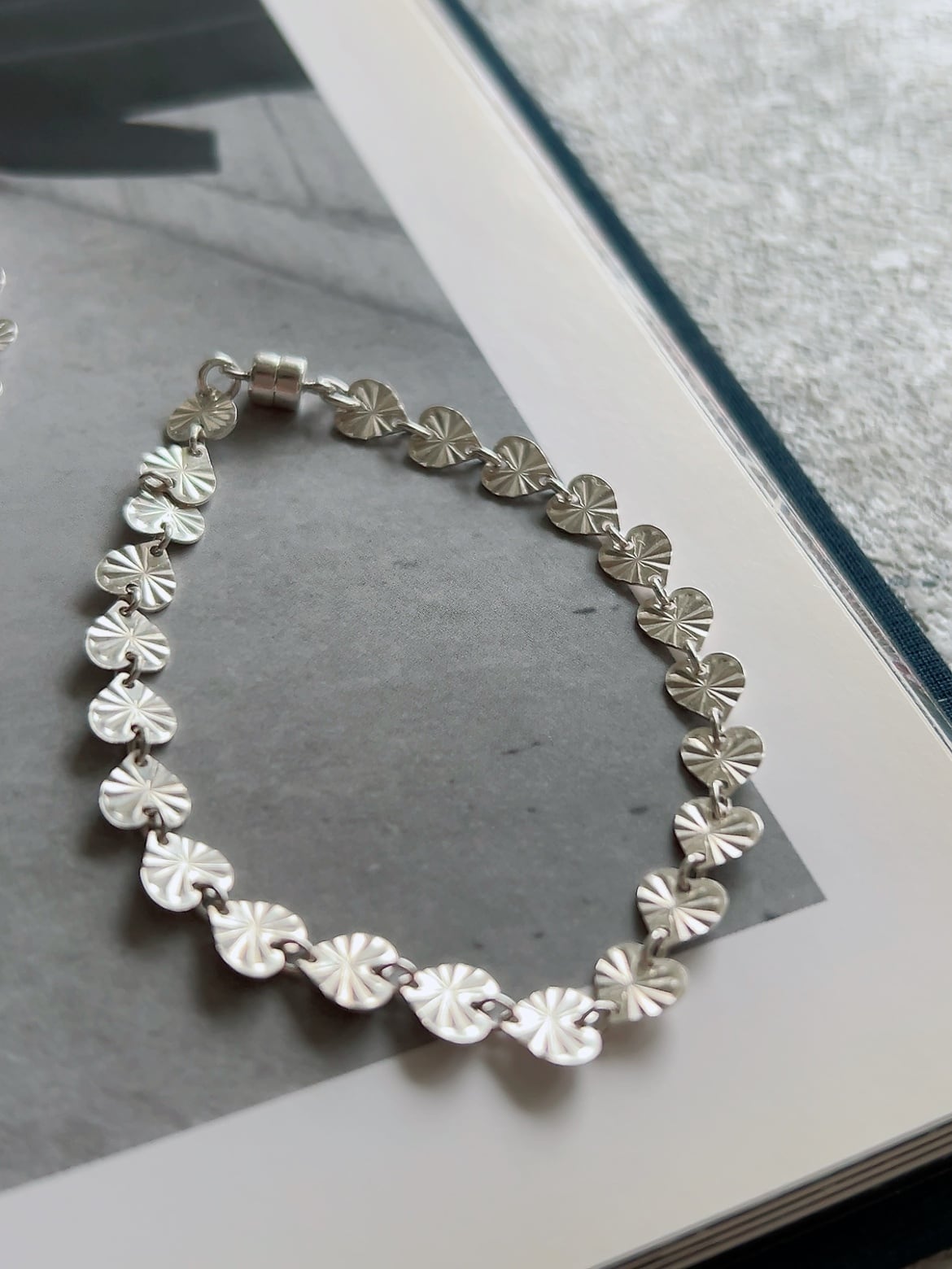 約7㎜サイズのハートを連ねた、存在感のあるシルバーチェーンブレスレット。