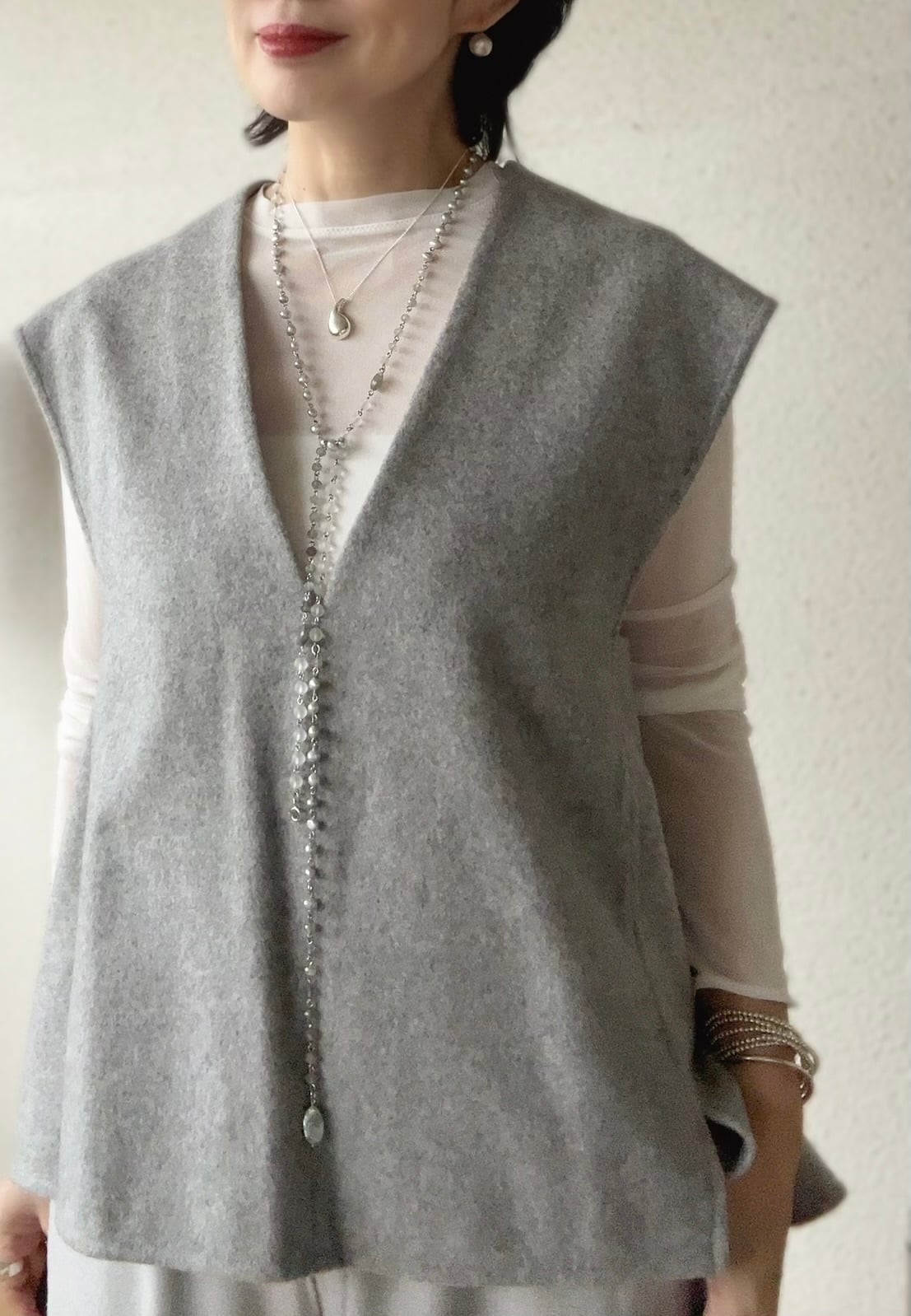 ラリエットにしてしなやかな揺れ感を。