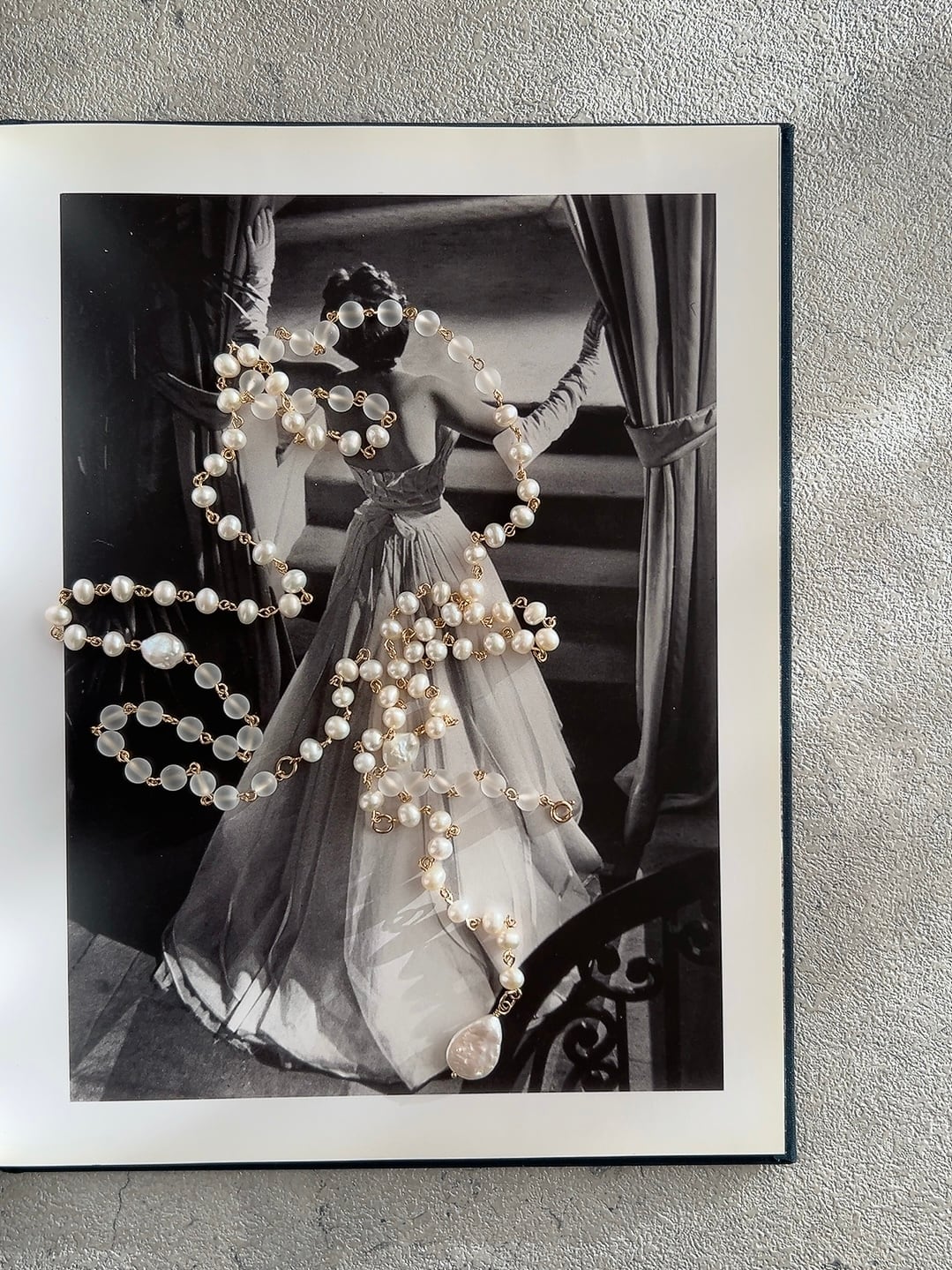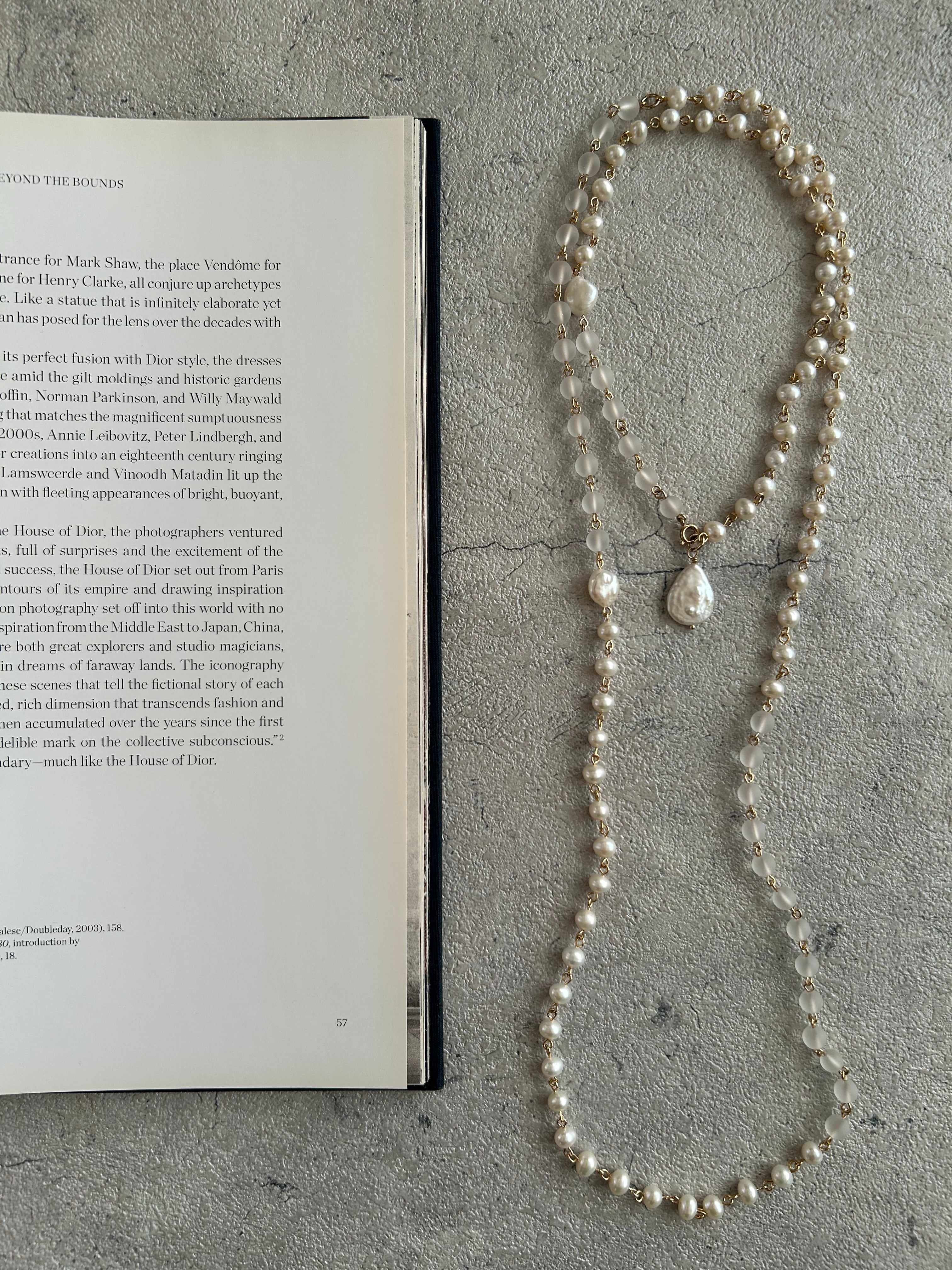 ところどころに配したバロックパールがほどよい抜け感を生み、大人の装いに軽やかさを添えます。