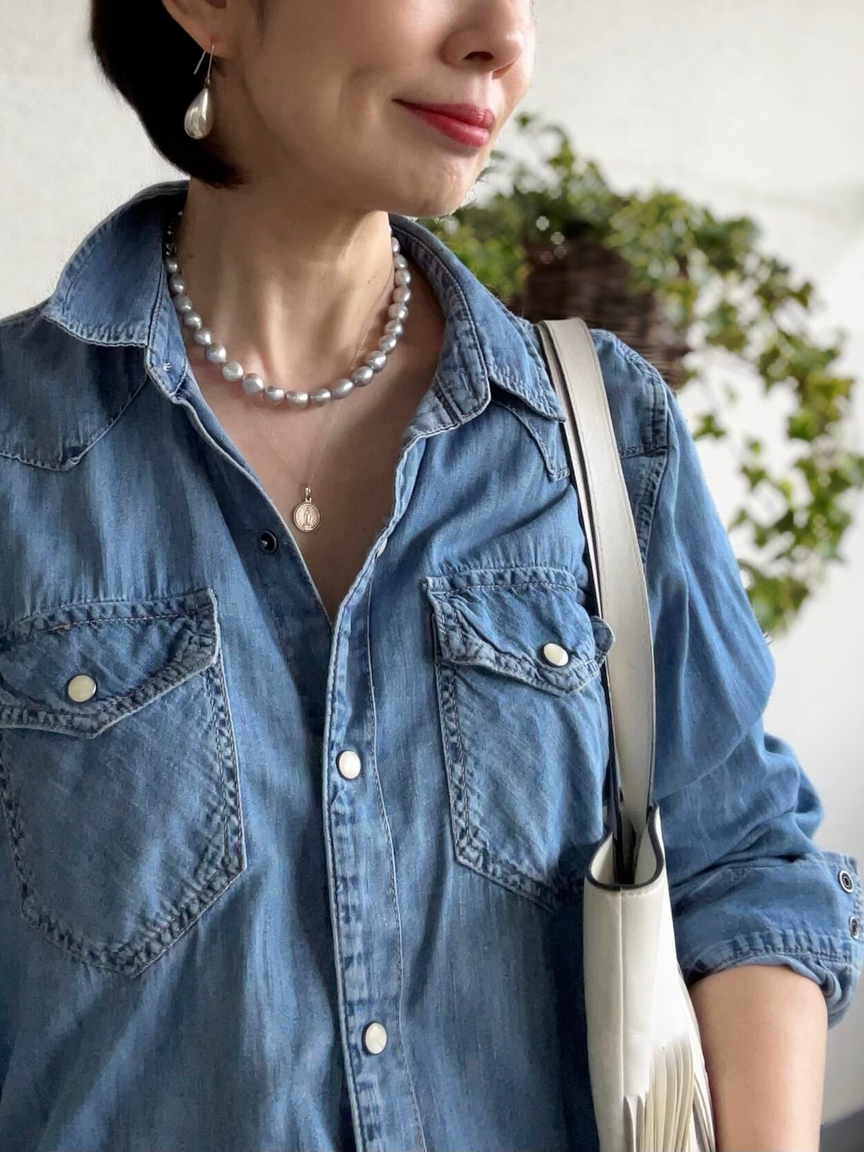 シンプルな装いに合わせるだけで、ほどよく華やぎ、