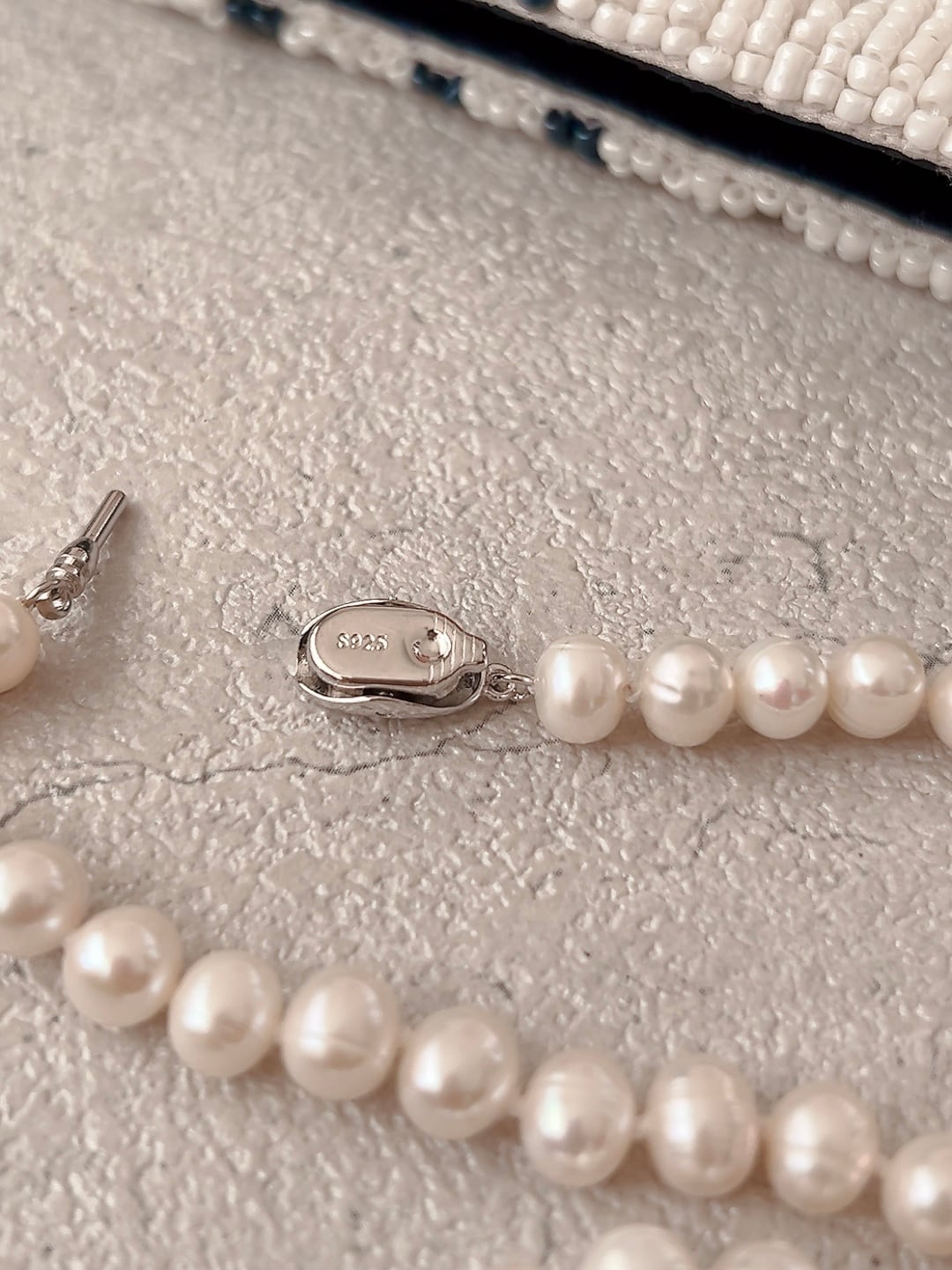 表面にほんのり筋の入ったパールは、