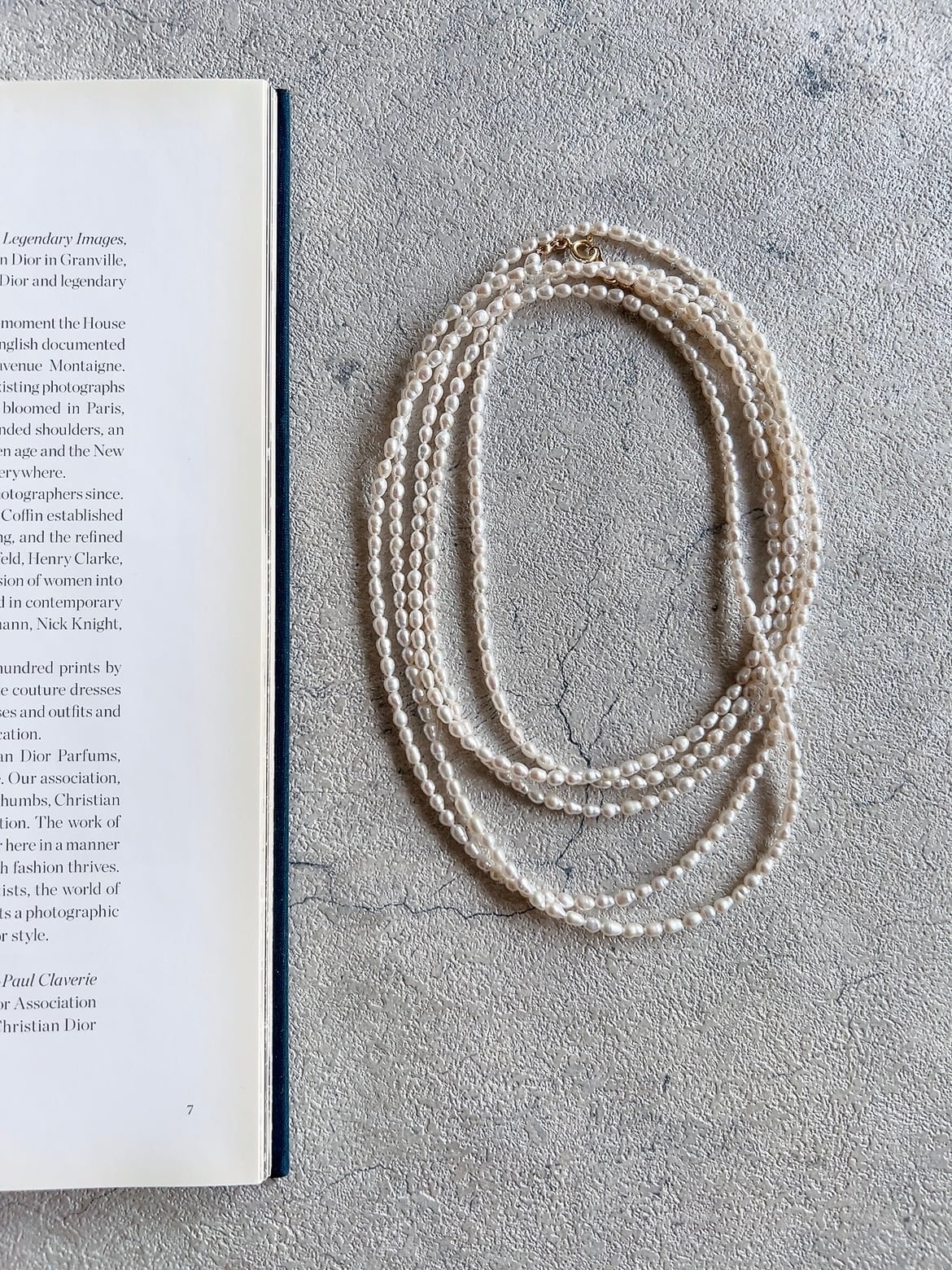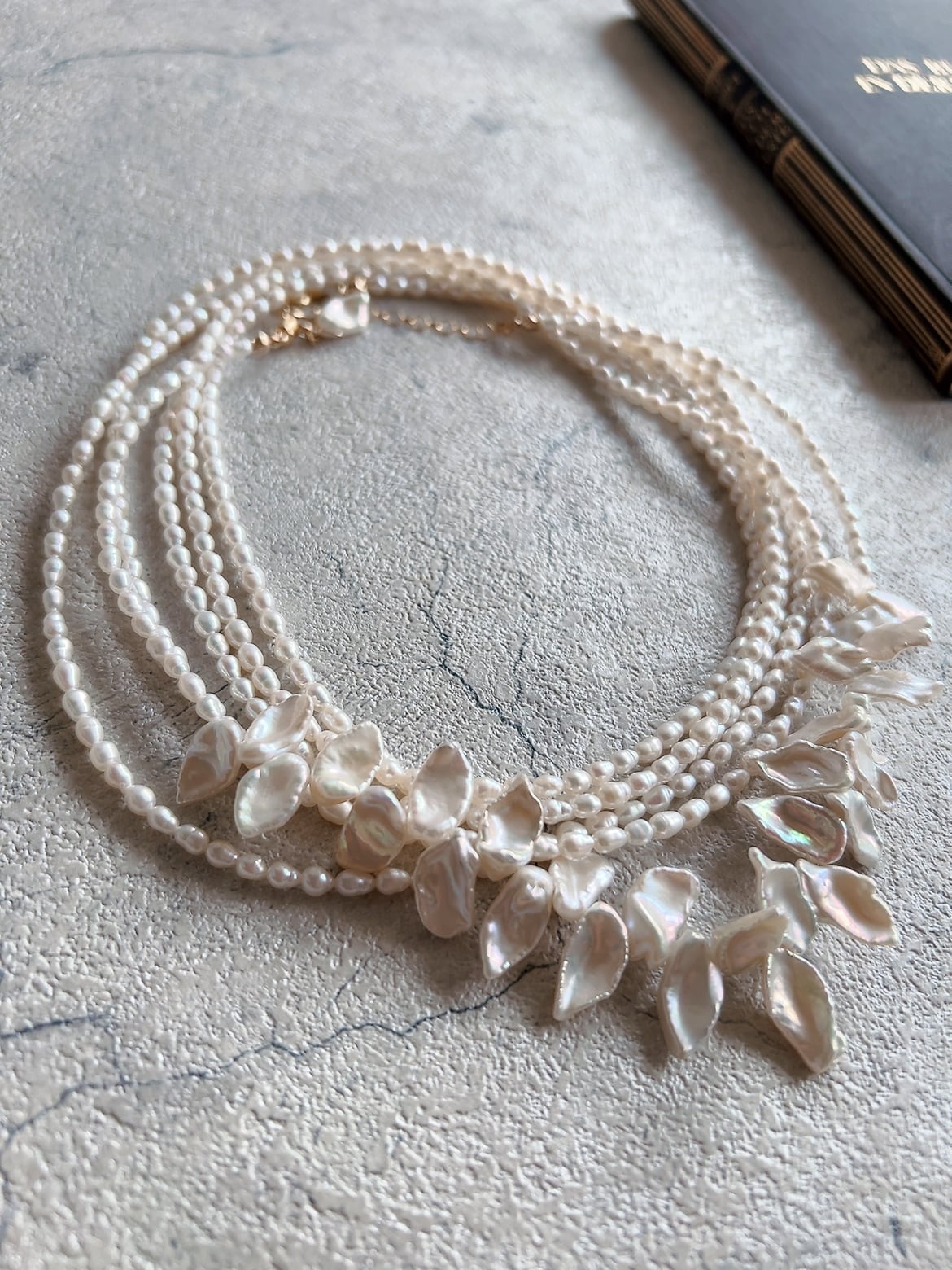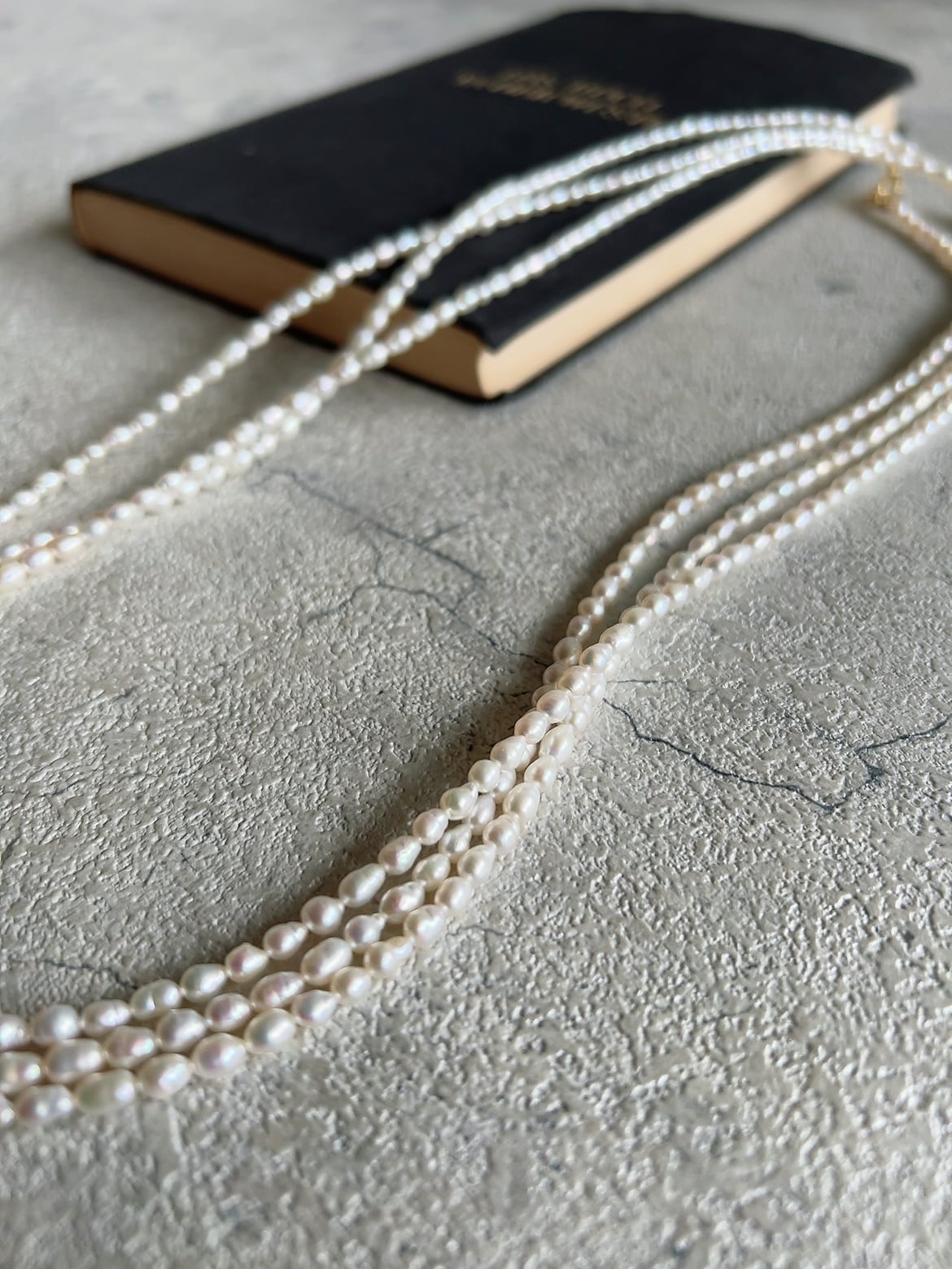 整った縦型のライスパールを連ねることで、