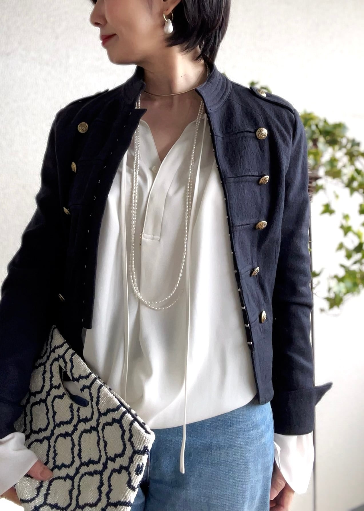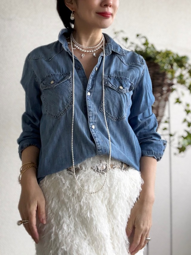 シンプルなニットやTシャツも、ぐっと大人っぽく。