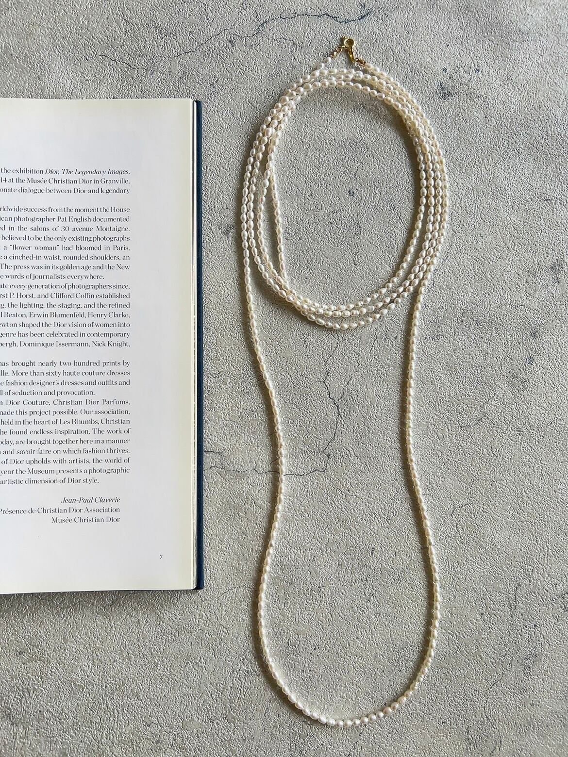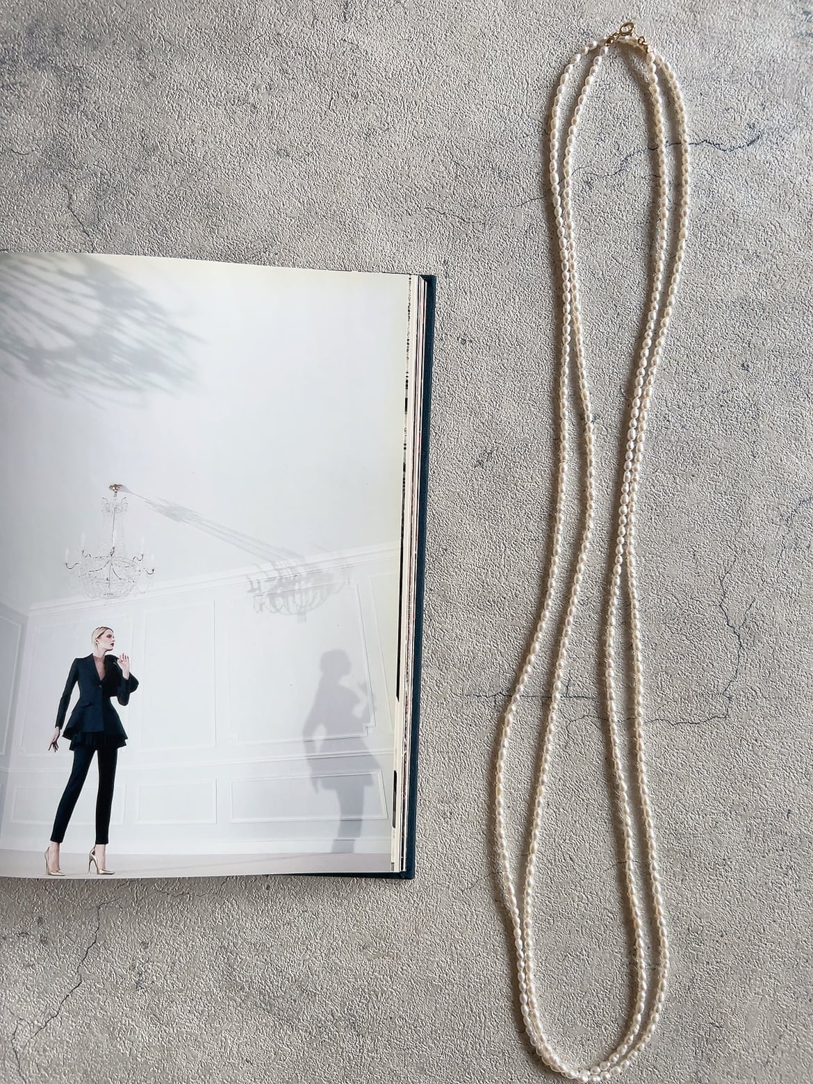 たっぷりと長さを持たせた、200cmのロングパールネックレス。