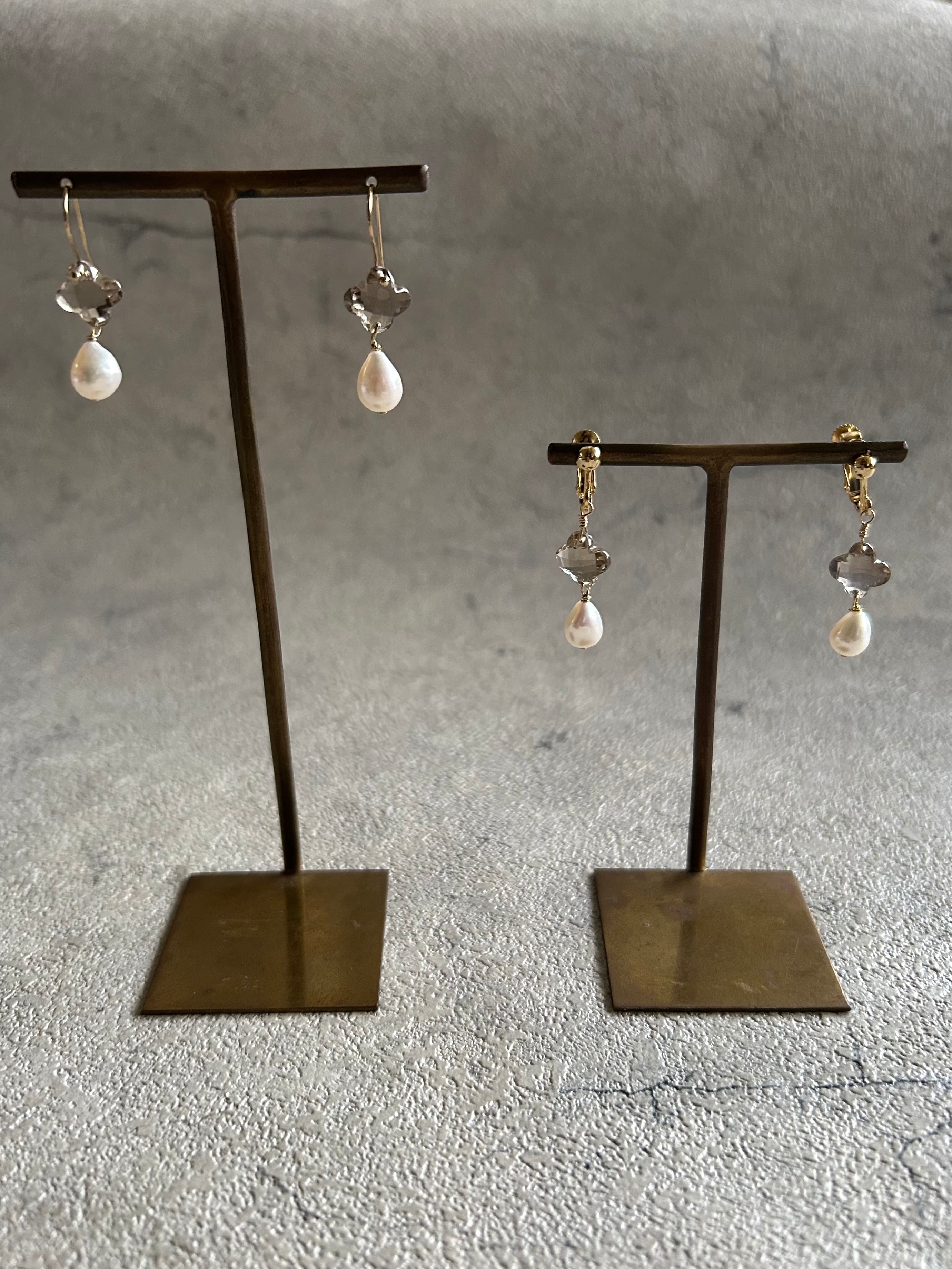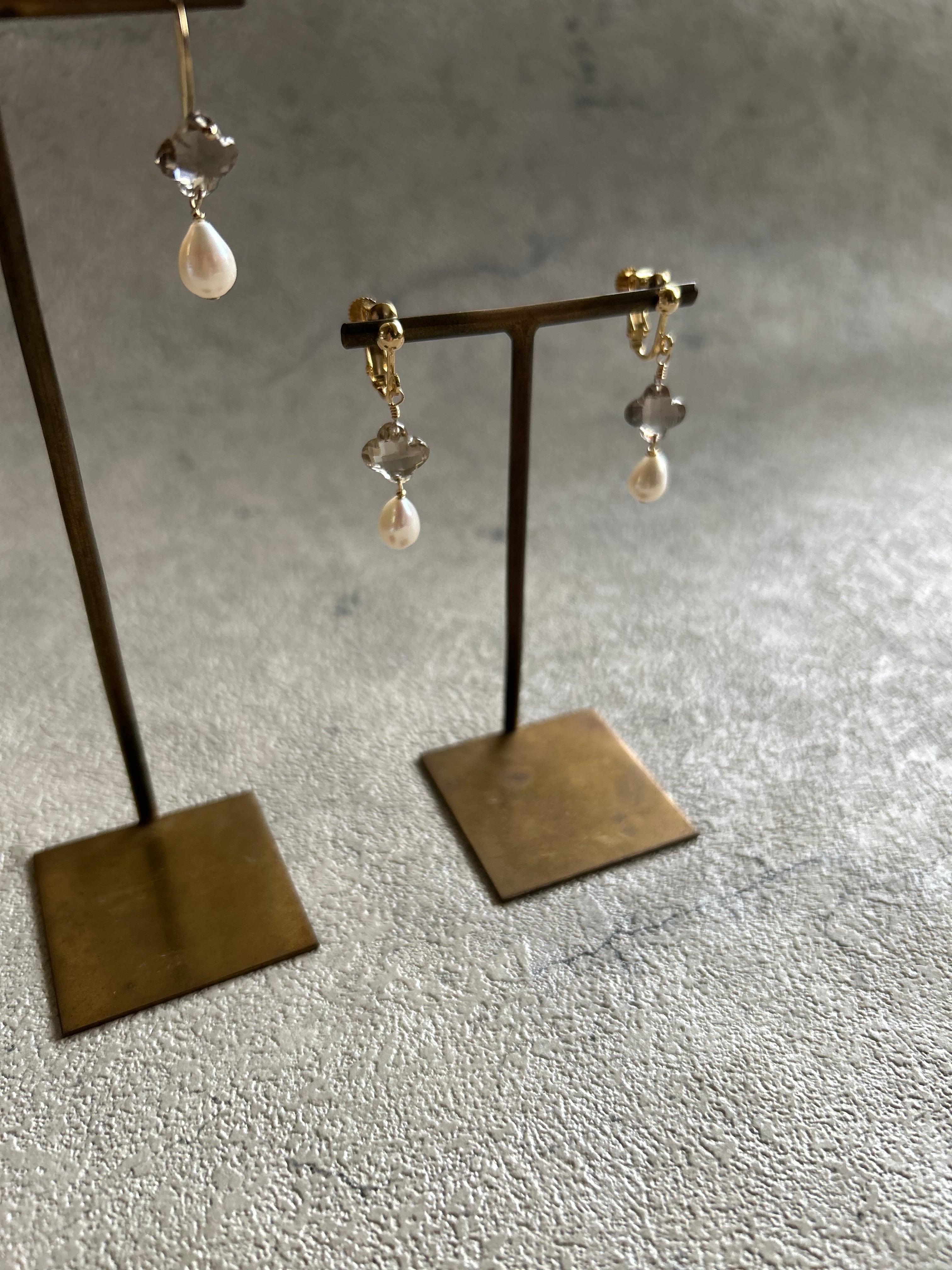 スモーキークォーツ フラワーピアス・イヤリング