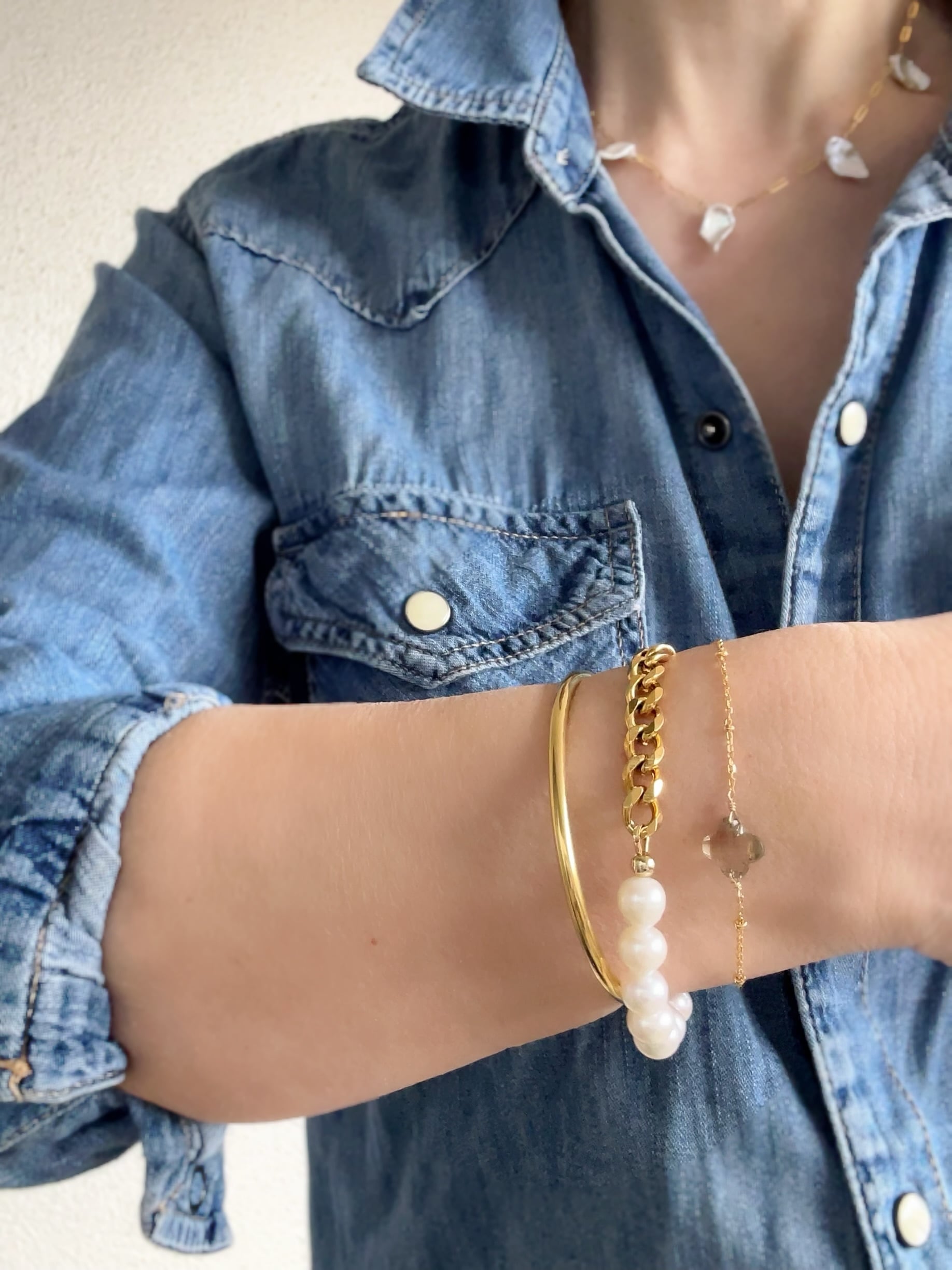 ネックレスとセットでのコーディネートもおすすめの一本です。