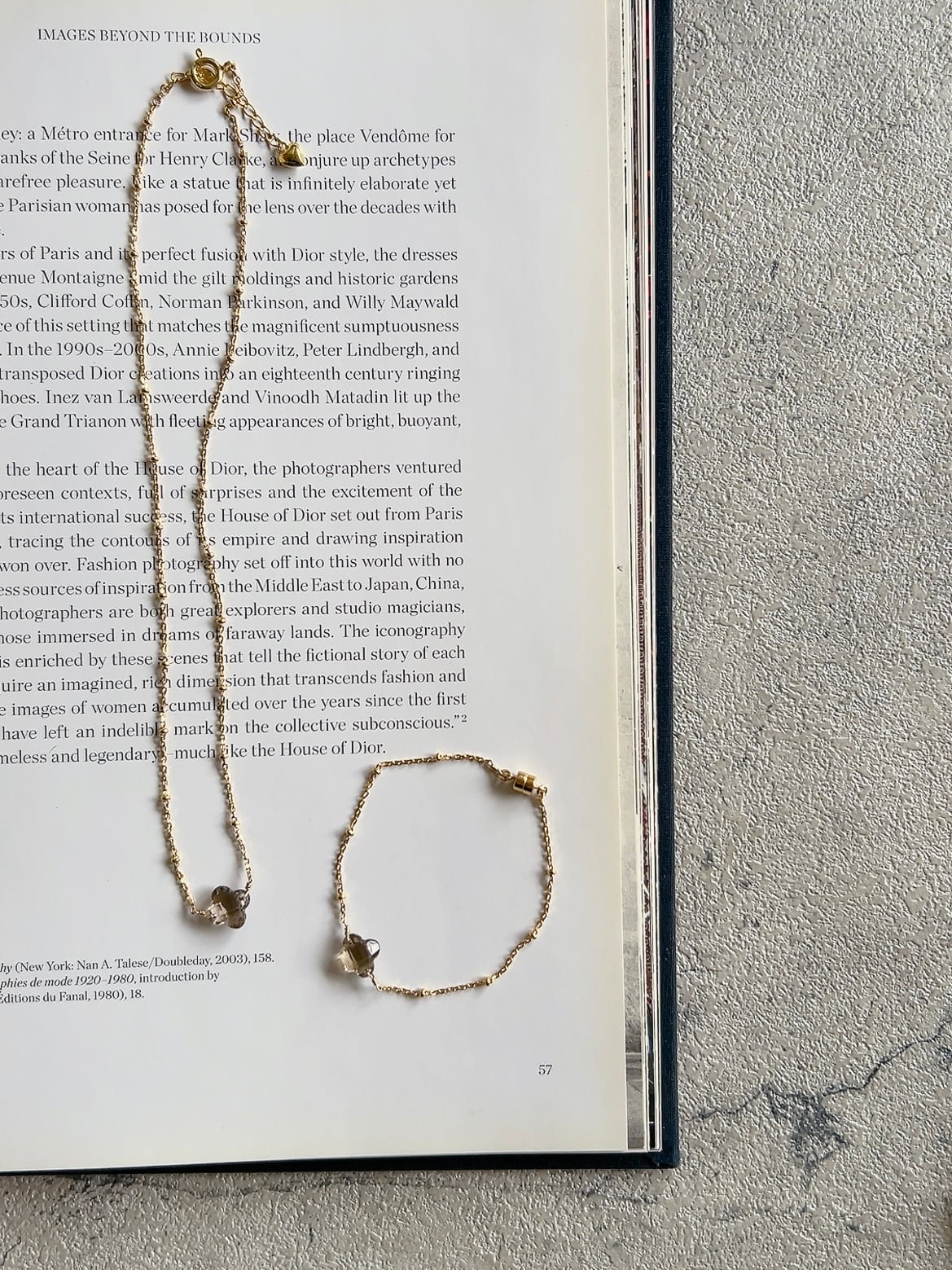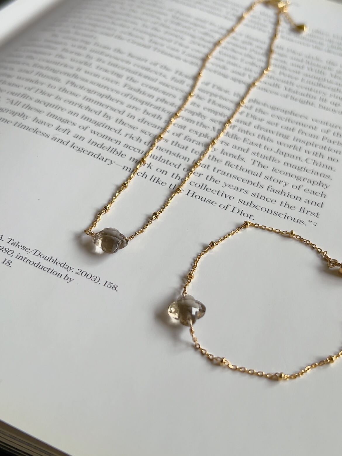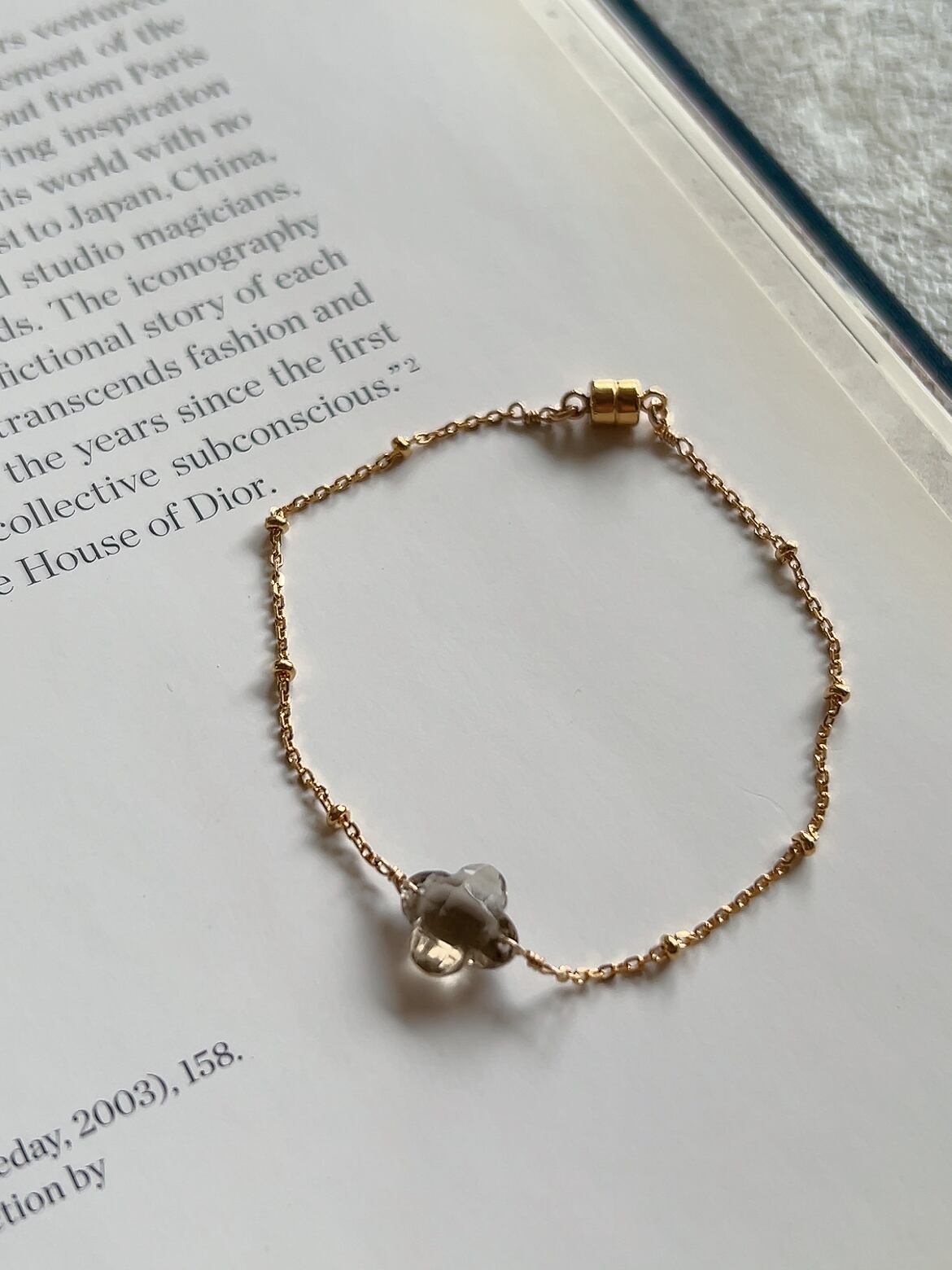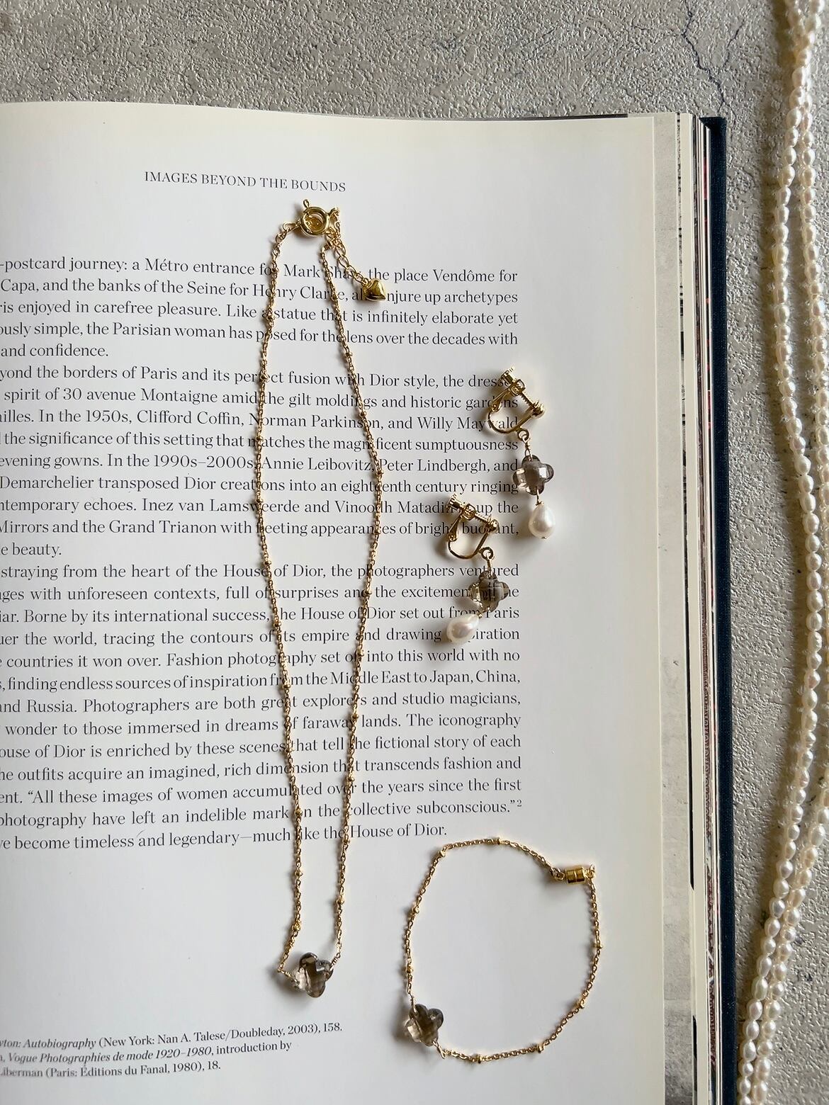 花びらのようなフォルムのスモーキークォーツをあしらった、