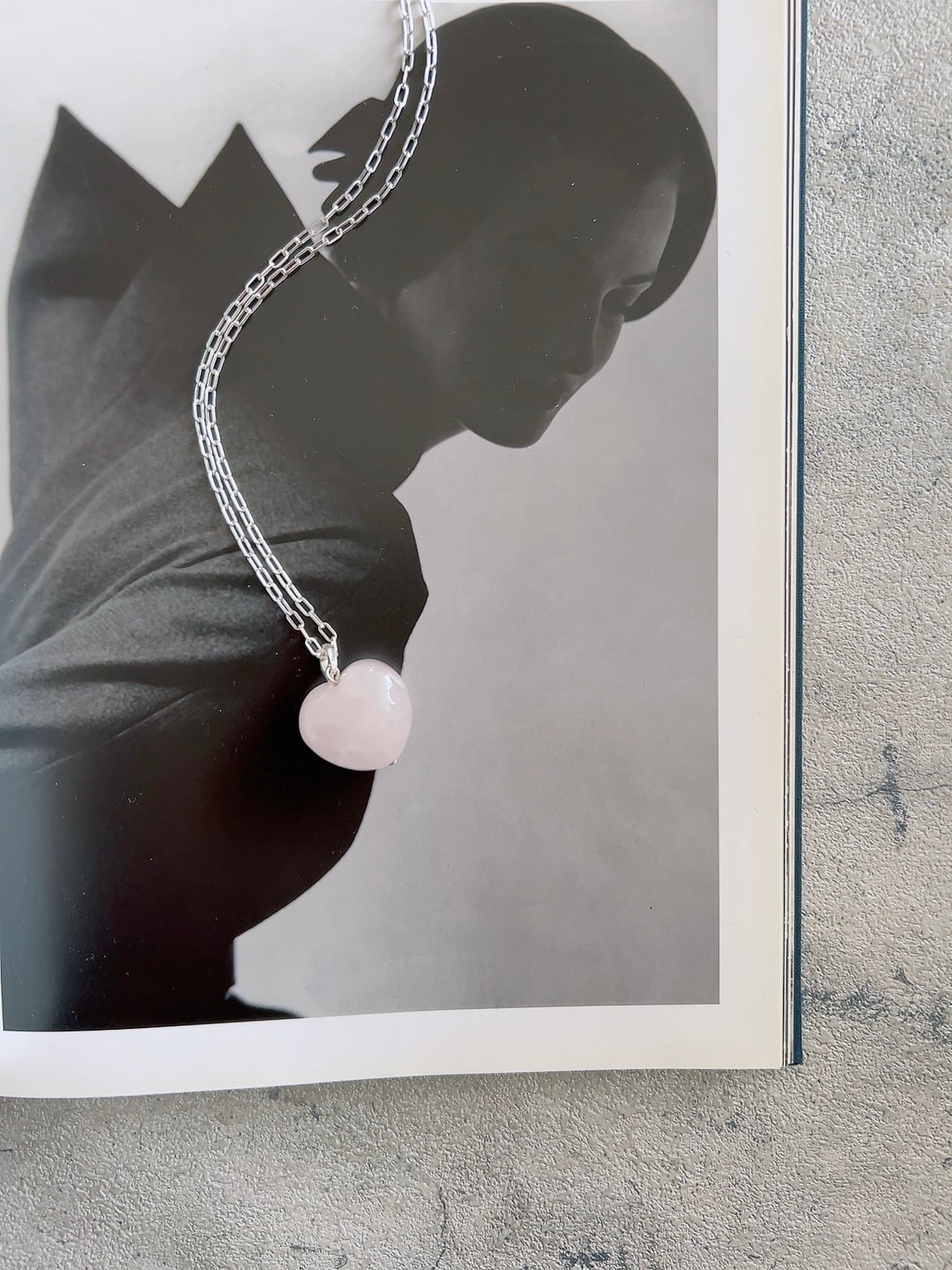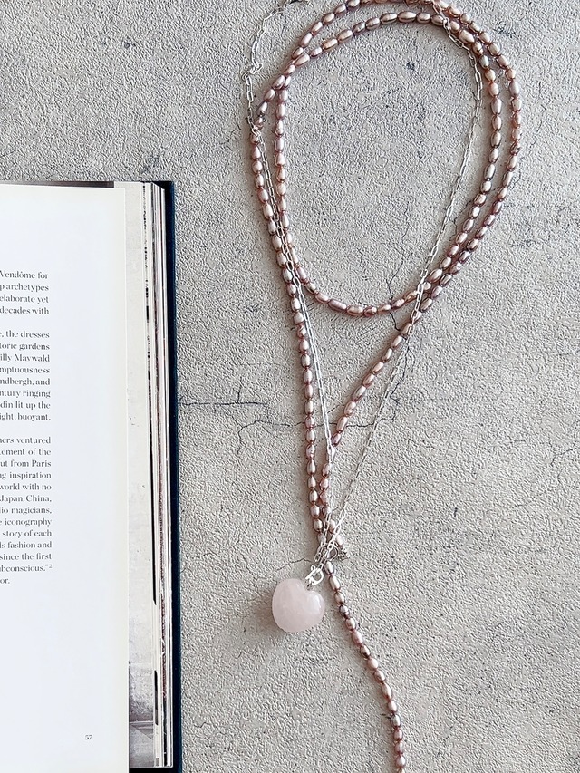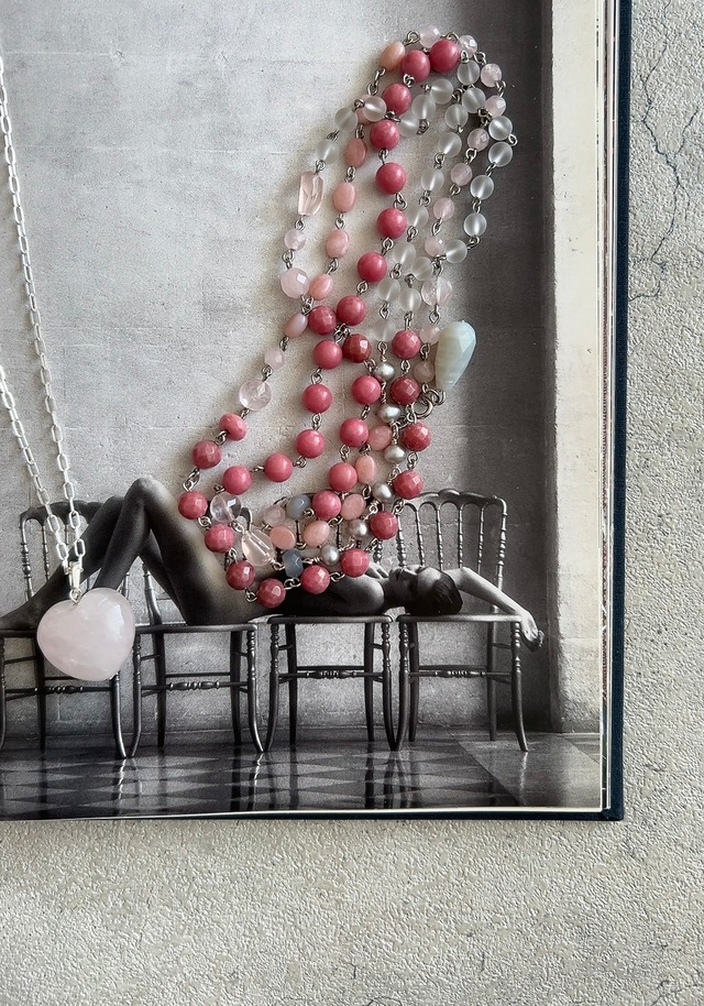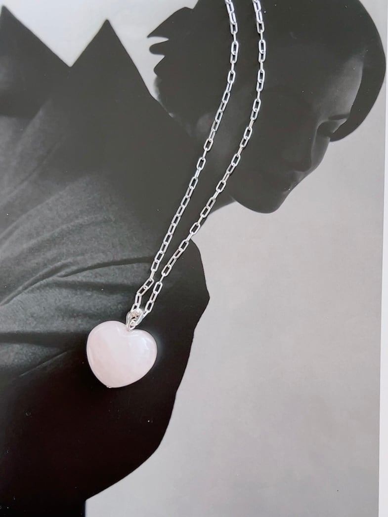 ローズクオーツの ハートネックレス。
