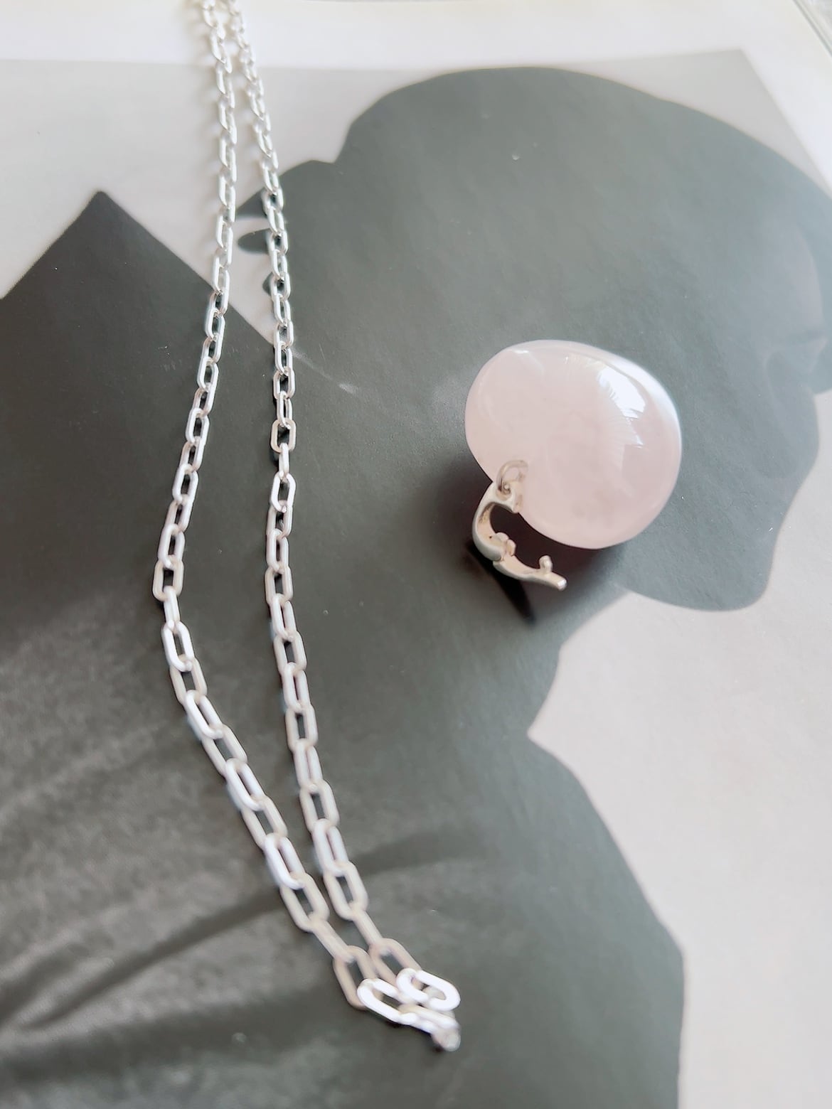 シルバー925のチェーンに揺れる淡いピンクは、