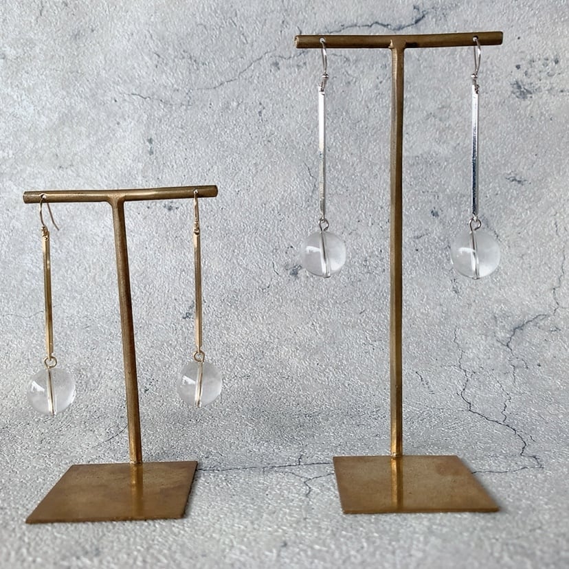 ■素材 シルバー:ピアス金具 シルバー925×ロジウムコーティング イヤリング金具 真鍮×ロジウムコーティング その他 真鍮×ロジウムコーティング ゴールド:ピアス金具 14金ゴールドフィルド イヤリング金具 真鍮 その他 真鍮×金メッキ 水晶 ■サイズ 全長 約6.5㎝ ■商品説明 水晶の一粒ピアス(イヤリング) 丸い大粒の水晶が耳元で揺れるシンプルなピアスです。 輪郭がはっきりしたクリアな水晶は涼し気でこれからの季節にぴったりのアイテムです。