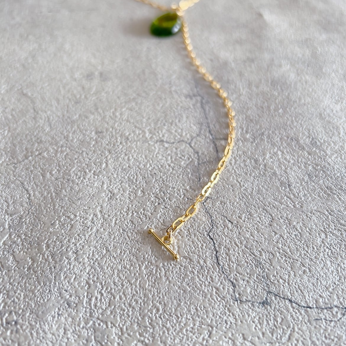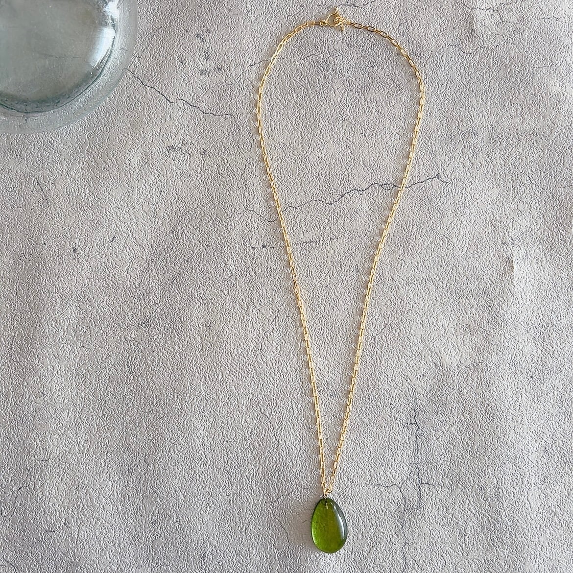 新緑を思わせるような爽やかな印象の、ドロップ型のアンバーネックレス。